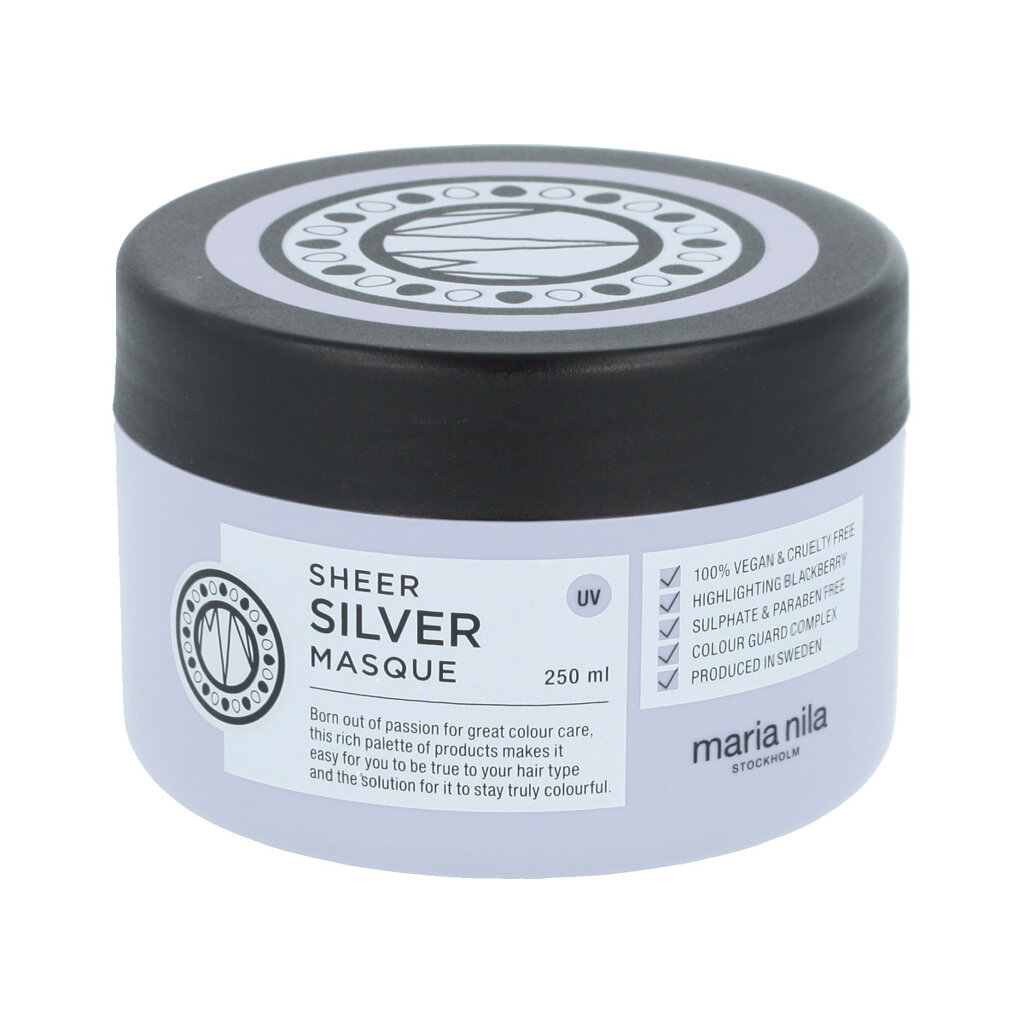 Maria Nila Sheer Silver Masque 250 ml - una maschera unica progettata per la cura intensiva dei capelli biondi che neutralizza le sfumature gialle, fornisce un'idratazione profonda e protegge il colore dei capelli dallo sbiadimento. Ideale per rigenerare e migliorare il tono dei capelli freddi.